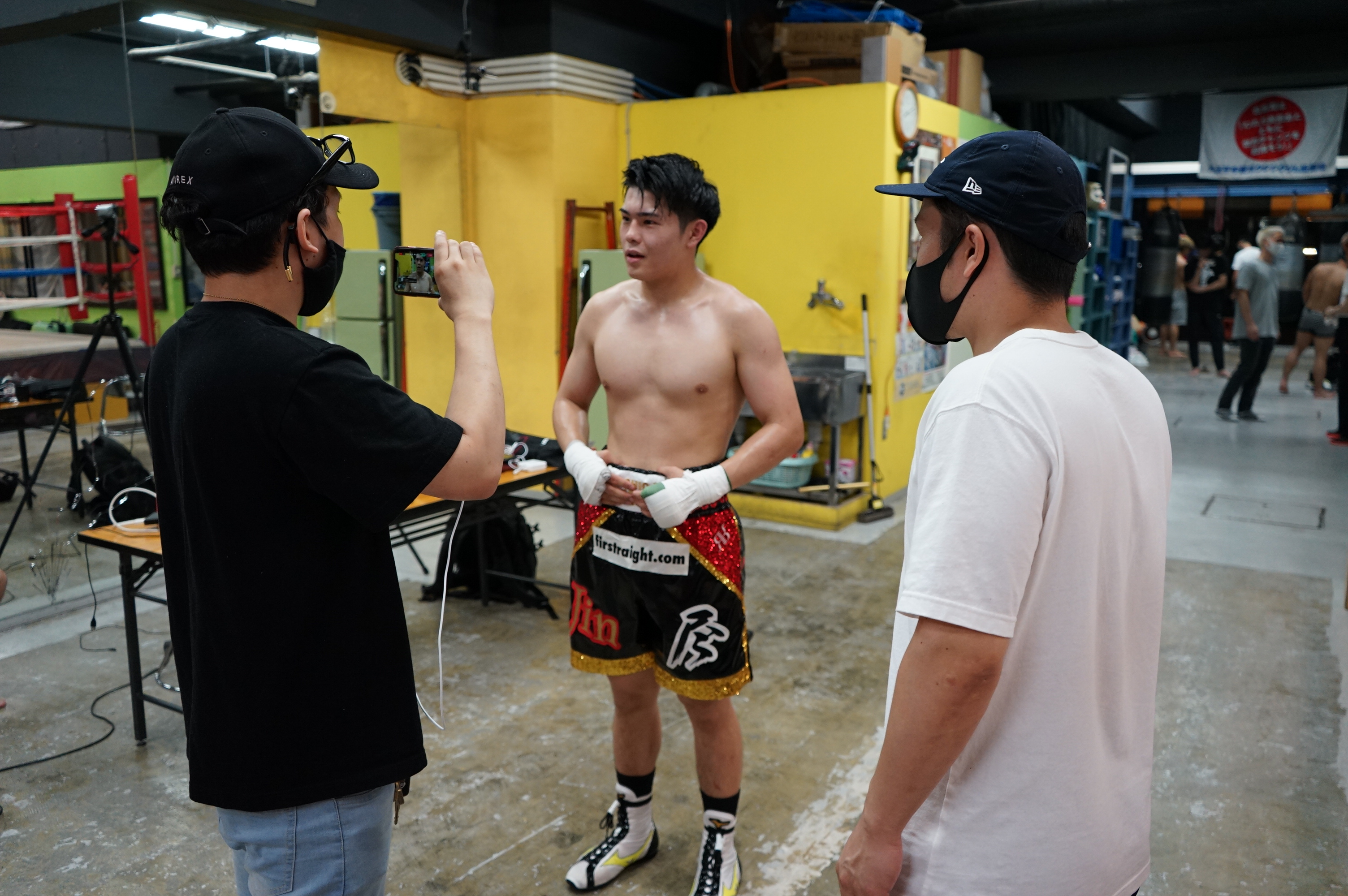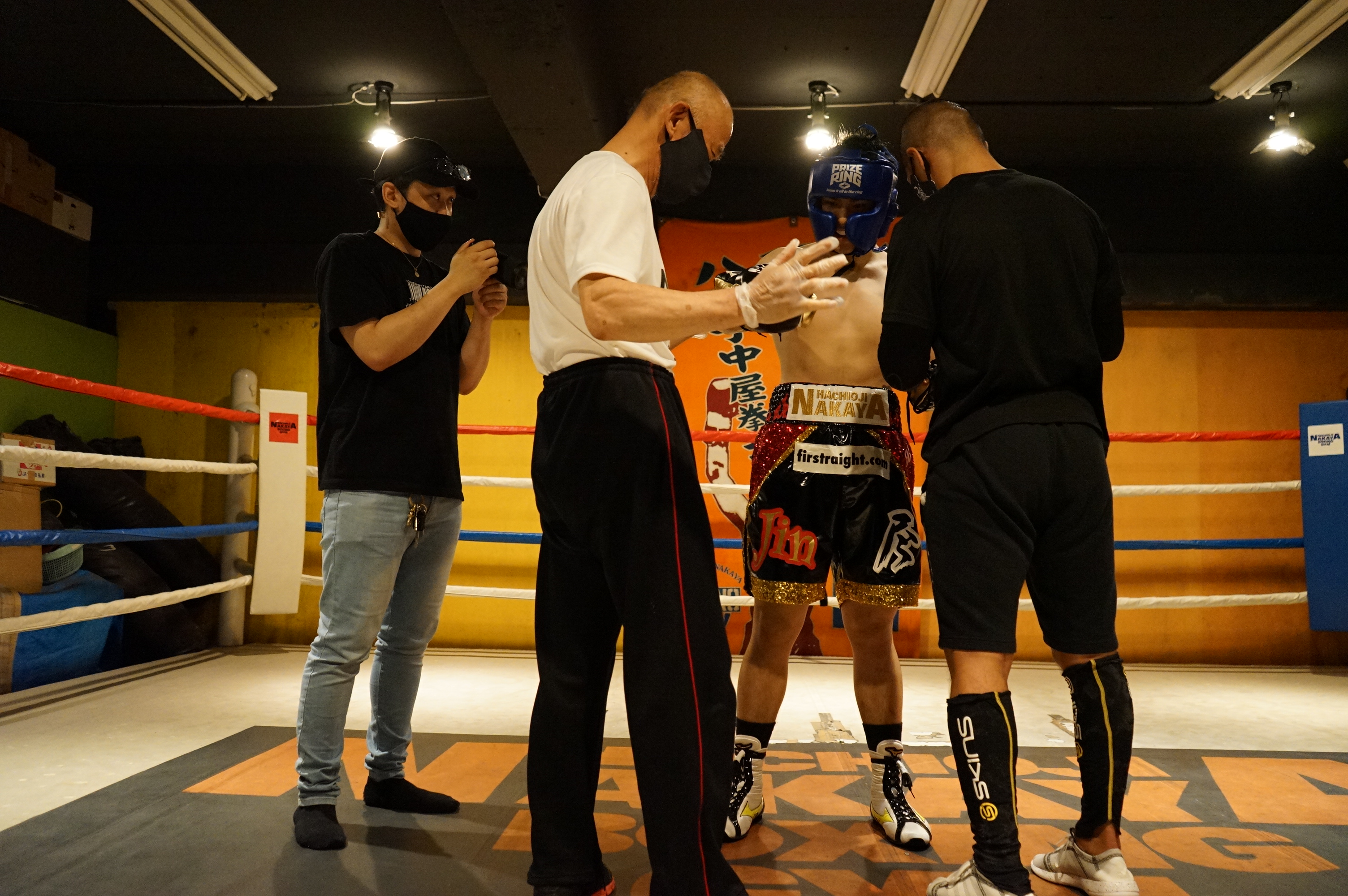 *このスパーの前に今回のゴールド・スポンサーさんになっていただき、今回のスパーで使用しているヘッドギア、グローブを提供していただいた『PRIZE RING SPORTS』様の動画CMの撮影に入りました!