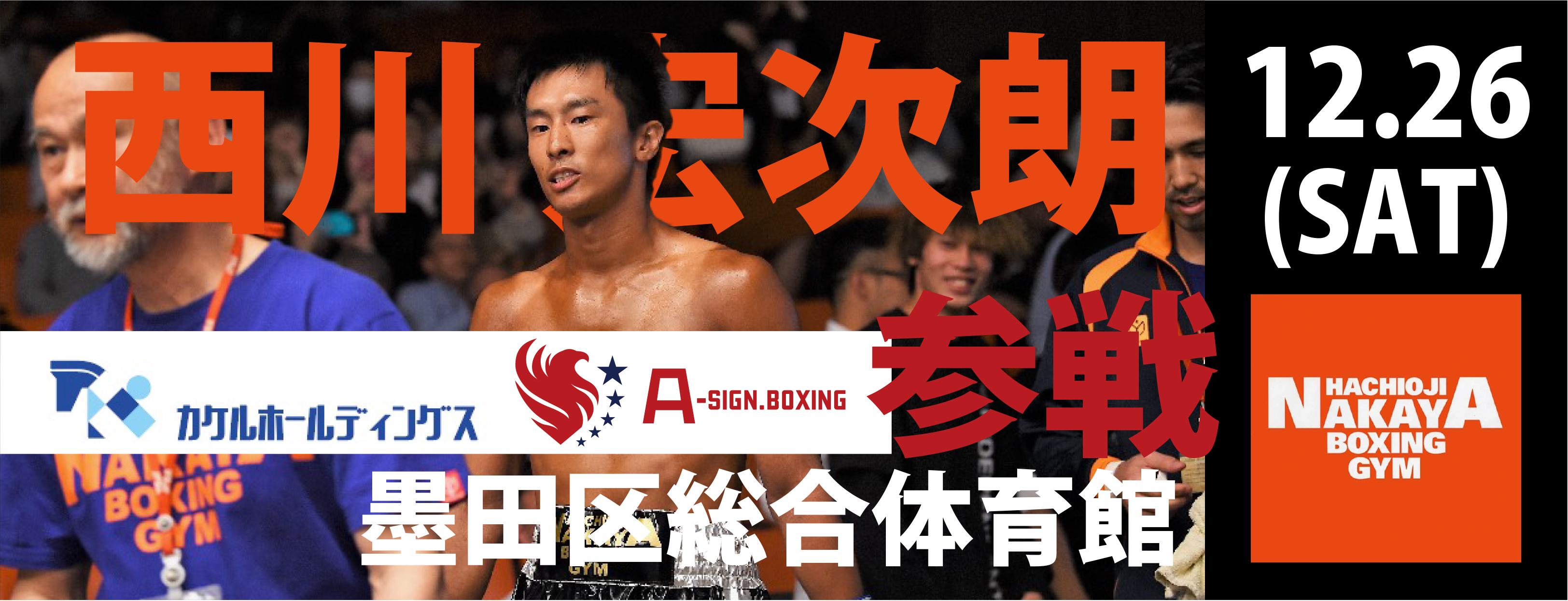 12月26日(土)の墨田区総合体育館で開催される『カケルホールディングス Presents A-SIGN.BOXING』に西川宏次郎が参戦します!