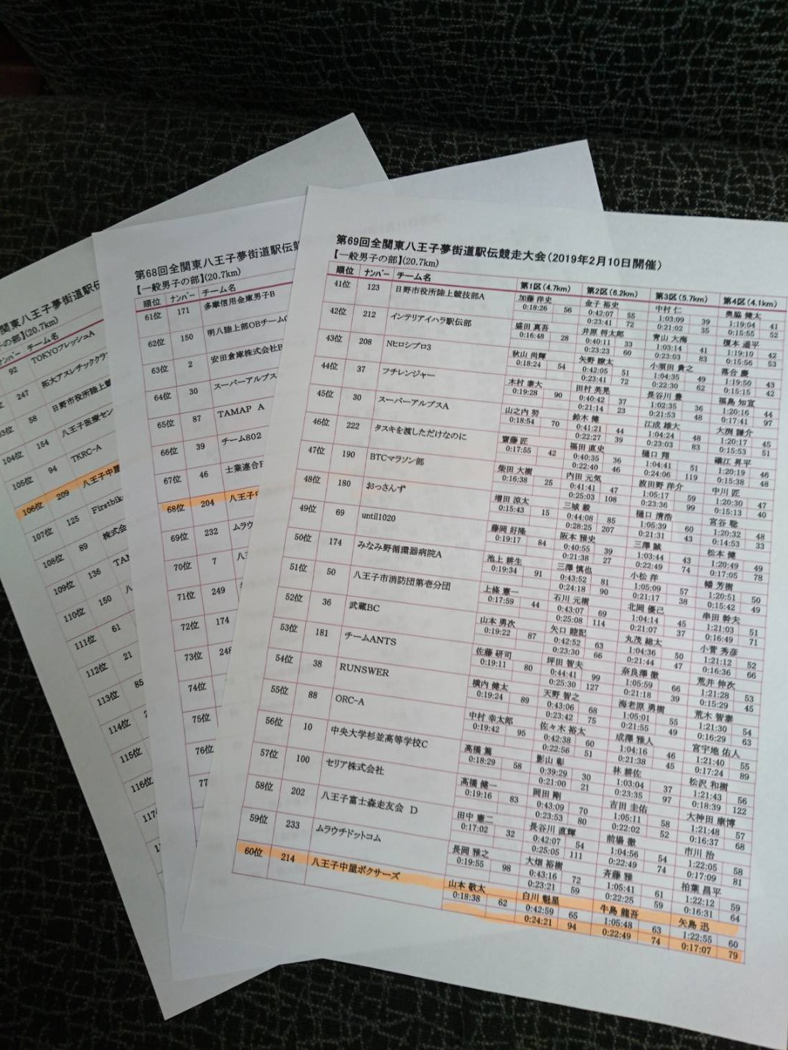 来年2020年もまた出場しますので、日頃のロードワークの成果が発揮できるよう、また今年の順位・タイムを上回れるよう期待します!