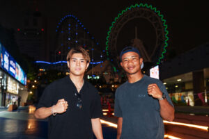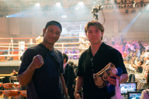 一方、ナァツ選手は同じスーパーウェルター級という階級の縁もあり、豊嶋亮太選手vs安達陸虎選手の激闘を尽選手とともに観戦し、大いに盛り上がっていました。