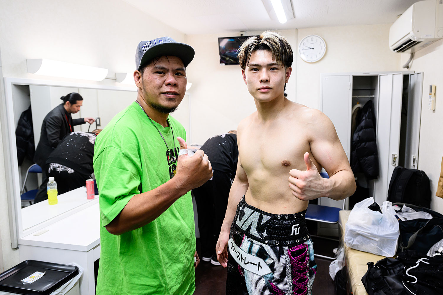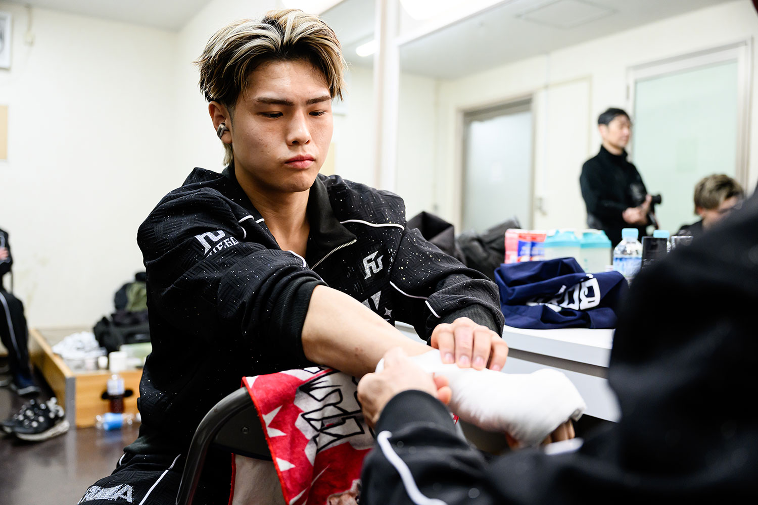 2026年2月19日『Lemino BOXING フェニックスバトル 150』、復帰戦を2R TKO勝利で見事復活を遂げた佐々木尽選手。試合前後の控室の様子などの舞台裏から、試合の様子を写真でお楽しみください!